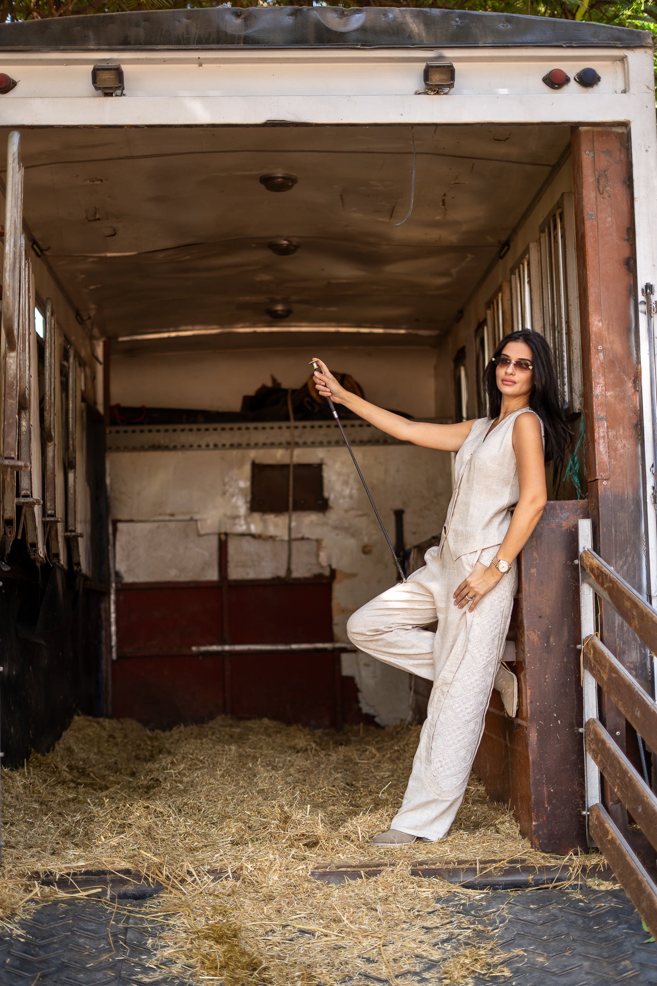 Crafted from airy linen, this set is ideal for warm days and chic evenings alike — a boho chic look that balances ease and elegance. Wear it together for a polished statement or mix and match with your wardrobe favorites.